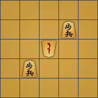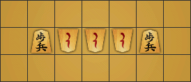 先手は、自分から見て一番手前の段(1段目)に、「歩」の面を上にした駒を9枚、横一列に並べます。