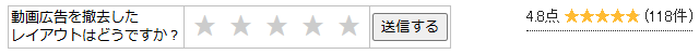 評価機能を改造して新レイアウトの評価を募集してみましたが、新レイアウトのほうが好まれているようで、微調整はあるかもしれませんが動画広告は撤去の方向で進めようと思います(2点評価と1点評価の方には申し訳ないですが)。評価ありがとうございました。